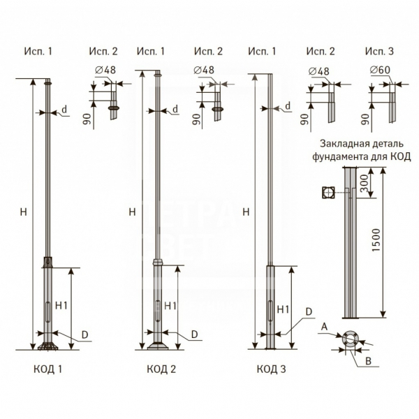 Опоры изготавливаются из трубного проката. В нижней части опоры имеется закрытый отсек (лючок) для установки автоматических выключателей и клеммных блоков. В опорах КОД возможно установка декоративных чугунных элементов.